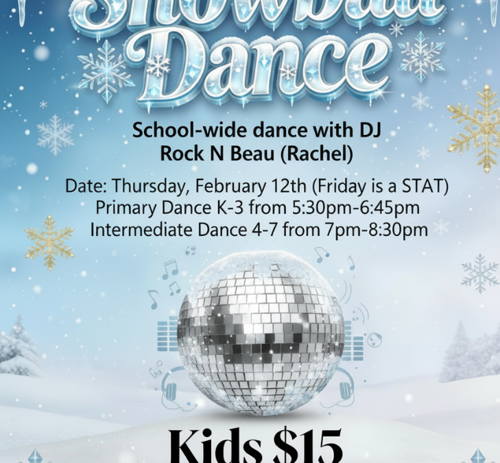 Date: Thursday, February 12th (Friday 13th is a Pro D Day, so no school!)